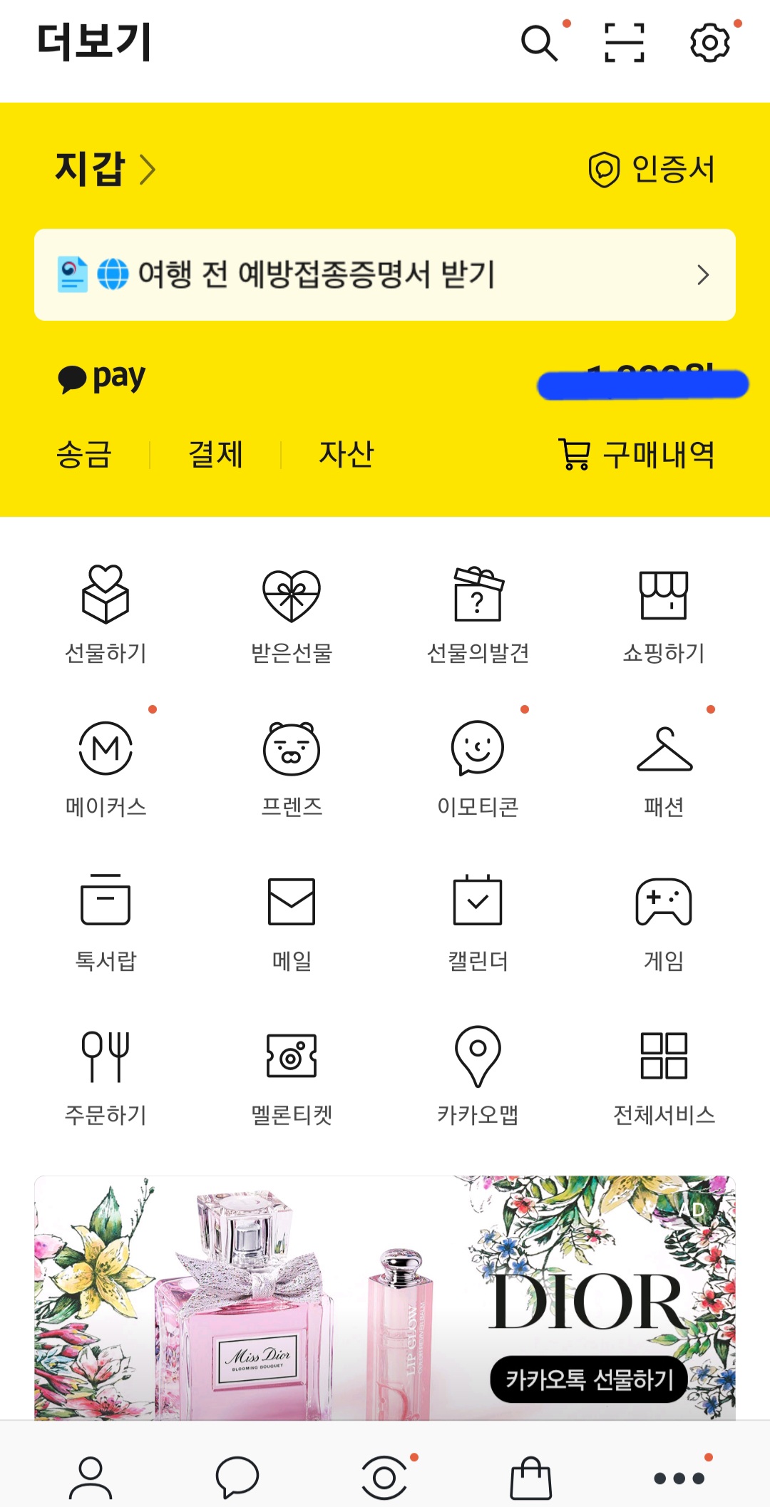 (2) 더보기탭 상단에 '지갑'이라고 써 있는 글씨를 클릭하세요