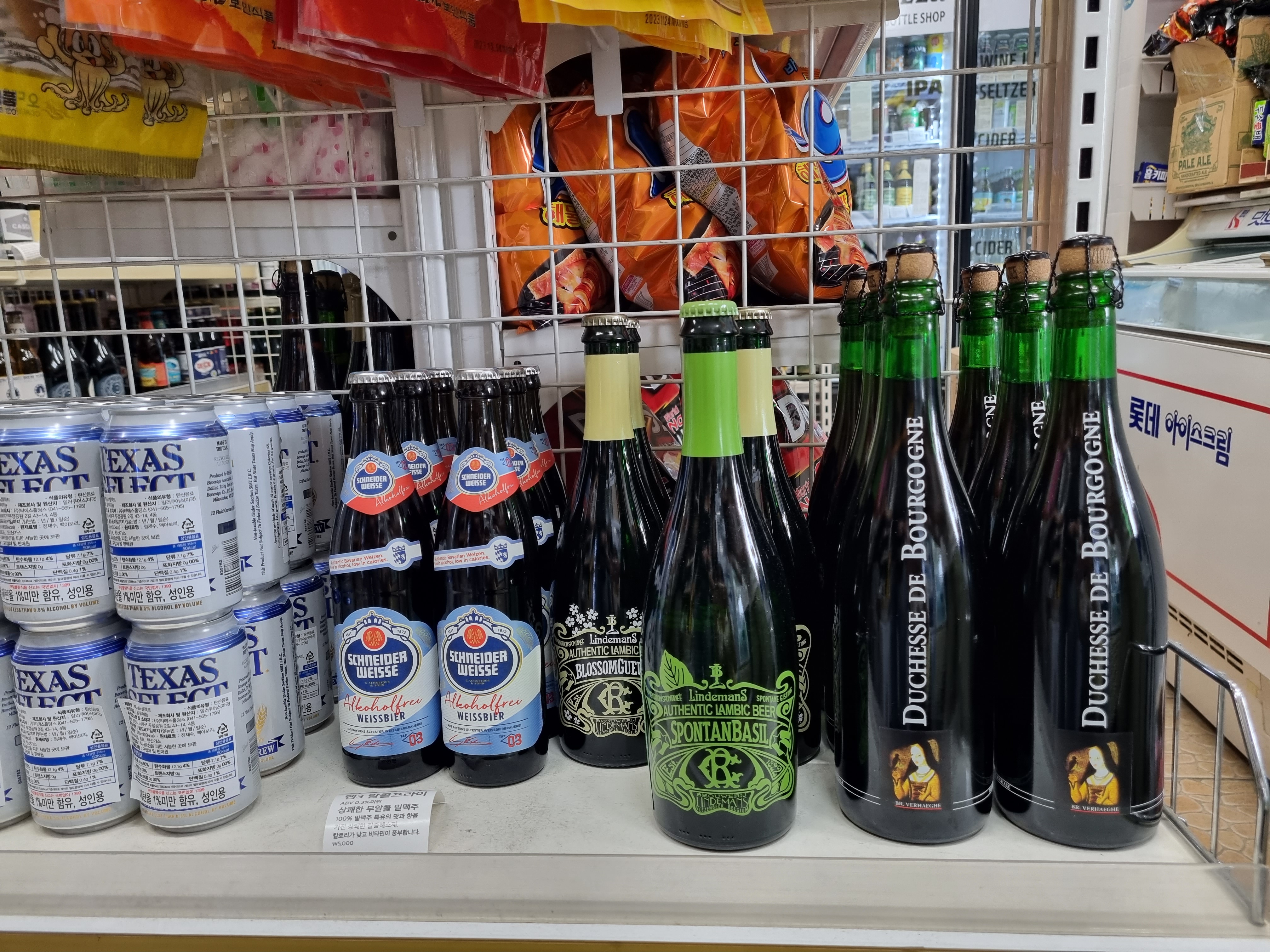 창문쪽에 빼곡하게 진열돼있는 맥주들이 보이시나요?